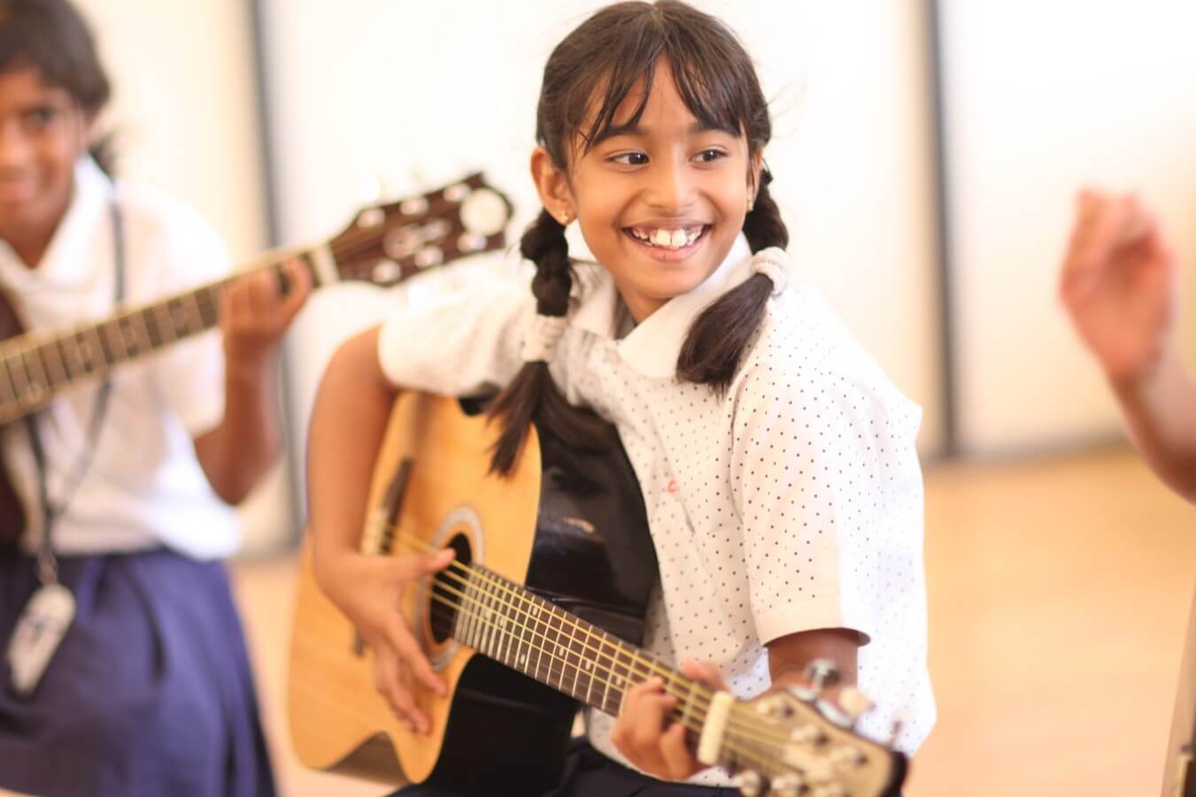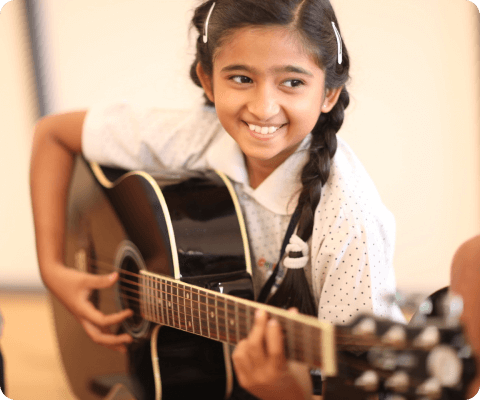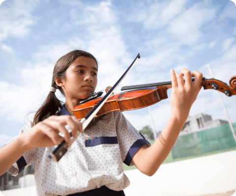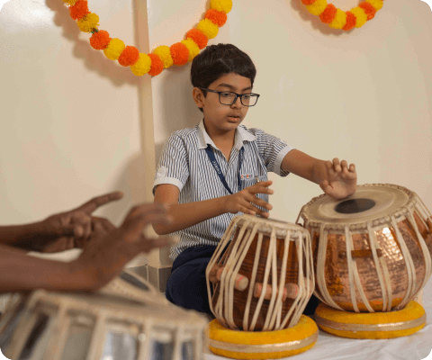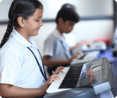 Under the CBSE, IBDP, and CAIE curricula, our students explore a wide array of art forms in dedicated spaces. They develop aesthetic sensibilities and become cultured individuals comfortable in sophisticated environments. Our offerings include Painting, Clay Modelling, Keyboard, Guitar, Tabla, Violin, Kuchipudi Dance, Yoga, and Chess.