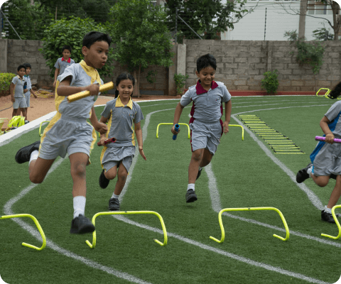 Boys and girls from Nursery to Class 2 are engaged in a range of exercises focused on the upper body, lower body and core that help in body development, coordination and balance. Girls and boys from Classes 3 to 5 learn eight different sports over the course of three years. During this time, the natural growth of the student along with body training is studied and an analysis is prepared for each student. In Classes 6 to 12, our students are encouraged to pick one sport to train in and play competitively.