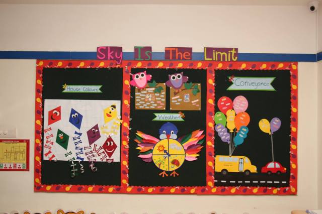 The class teachers of this class believe that the Sky is the Limit for the students and tried to decorate the classroom where the students are free to move around. It gives them a feeling to explore various hands-on activities.