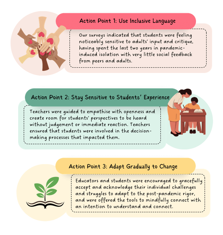 - We identified that 70% of our students were facing challenges in settling in to the in-person school.
